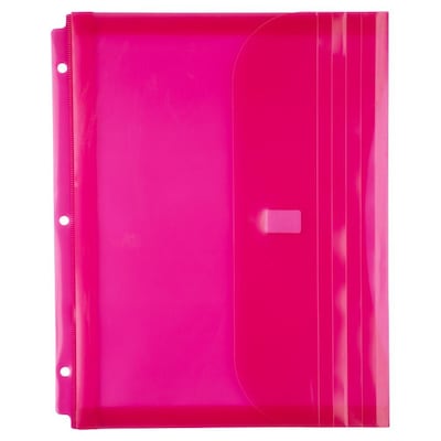 JAM Paper Pink plastic binder envelope sized 9 3/4" x 13" comes with a 3 hole punch, Hook & Loop closing that helps to keep your belongings safe and is sold as 12 per pack.