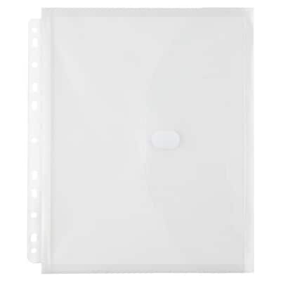 JAM Paper Clear Letter Booklet Plastic Binder Pockets with Hook & Loop Closure and 3 Hole Punch are 9.75 x 13inches in size and have a 1 inch expansion. Each one has 3 binder holes on its bottom spine that allows it to fit perfectly into a standard sized 3 ring binder. This pack includes 3 Pockets. Composed of thin and pliable, yet sturdy and protective plastic, these Pockets are ideal for standard sized documents that you want to store, keep safe, and easily carry around inside of a binder. They reliably guard your papers again tearing, bending, stains, and more. The Hook & Loop Closure of these Pockets ensures that they close tightly and can be opened easily. Their clear quality provides the added convenience of being able to view their contents from the outside. Size: 9.75in x 13in | Color: Clear | Quantity: 3