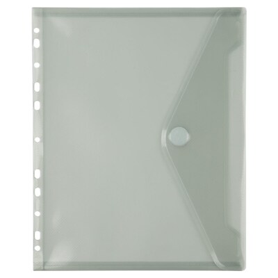 JAM Paper Plastic 3 Hole Punch Binder Envelopes with Hook & Loop Closure are any binder-lover's best friend! These 9 1/2" x 1 1/4" x 11 1/2" red letter booklet envelopes are excellent at saving space while guaranteeing safety and style. Clip these three hole punch envelopes into any standard binder for ultimate storage and efficacy. With a 1" expansion, sliding in essays, presentations, drawings, pens and pencils is a breeze. Your contents are protected by pliable, sturdy plastic and a reliable hook and loop closure. While we can't help you from running late to class, our envelopes make it easier to be prepared when its most needed! This pack contains 3 grey envelopes. Size: 9.5in x 11.5in | Color: Grey | Quantity: 3/pack
