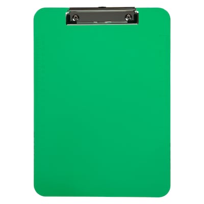 JAM Paper Plastic Clipboards are reliable and durable, making them perfect for on-the-go students and professionals! The sturdy plastic will keep your handwriting neat and legible while the secure metal clip will keep your papers together and organized. Each clipboard also has both a standard and metric ruler etched into the sides, so when you forget your ruler, you'll always have one handy. These standard size, transparent green clipboards measure 9 x 12.5 inches and are perfect for any
