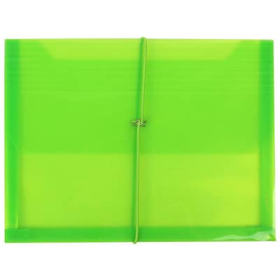 JAM Paper Lime Green Letter Booklet Size Plastic Expansion Envelopes with Elastic Band Closures are ideal for storing multiple standard sized sheets of paper at the office, in your desk, on you shelf, in your dorm room, in your locker, or anywhere! Each one is made from pliable yet durable, semi-transparent bright green plastic and closes with an attached elastic band that expands to encircle each envelope in the middle. With 13 x 9.75 inches of space, and the capacity to expand up to over 2 inches in width, these envelopes can handle larger files. Reliably protect your documents from dirt, bends, and tears while making them stand out with this vibrant green color! (Sold Individually)