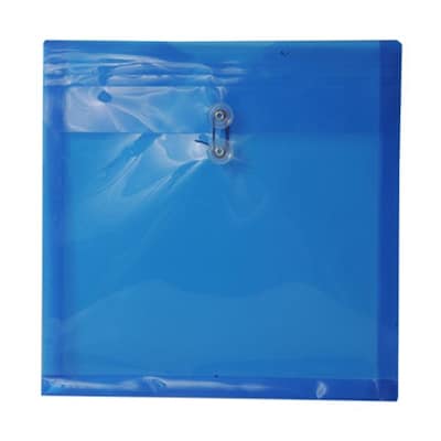 JAM Paper® 13" x 13" Blue button and string plastic envelope in a pack of 12 is expandable up to 1" and allows you to keep your documents safely.