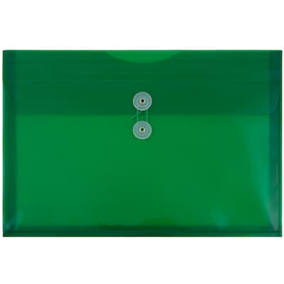 JAM Paper® Plastic Envelopes with Button and String Tie Closure, Legal Booklet, 9.75 x 14.5, Green Poly, 12/pack (219B1GR)