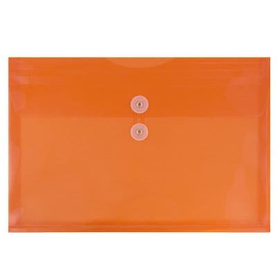 JAM Paper® Orange Legal Sized Plastic Envelopes with Button and String Tie Closures are perfect for storing and protecting larger or longer documents! Each one is made of pliable yet durable plastic, had a straight flap opening and features a two button string tie closure. These envelopes feature a carrot orange color and a smooth, slightly transparent surface. This combination gives your stored documents a splash of bright color while still allowing you to view them from the outside, making it easy for you find them quickly and easily! These envelopes are about 10 x 14 inches in size and come in packs of 12. Use these envelopes, at work, home, or school to protect documents from scratches, bends, and dents!