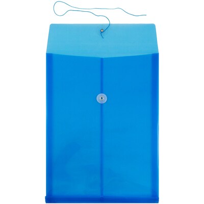 JAM Paper® Plastic Envelopes with Button and String Tie Closure, Legal Open End, 9.75 x 14.5, Blue Poly, 12/pack (119B1BU)