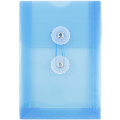 JAM Paper® Plastic Envelopes with Button and String Tie Closure, Open End, 4.25 x 6.25, Blue, 12/Pack (473B1BU)