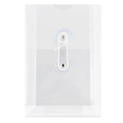 JAM Paper® Plastic Envelopes with Button and String Tie Closure, Open End, 4.25 x 6.25, Clear, 12/Pack (473B1CL)