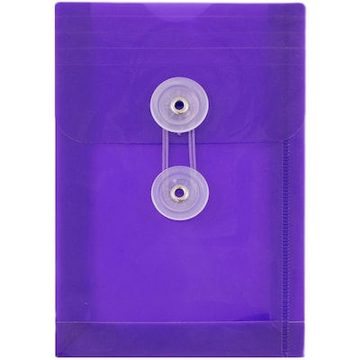 JAM Paper® Plastic Envelopes with Button and String Tie Closure, Open End, 4.25 x 6.25, Purple Poly, 12/pack (473B1PU)