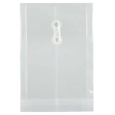 JAM Paper® Plastic Envelopes with Button and String Tie Closure, Open End, 6.25 x 9.25, Clear, 12/Pack (472B1CL)
