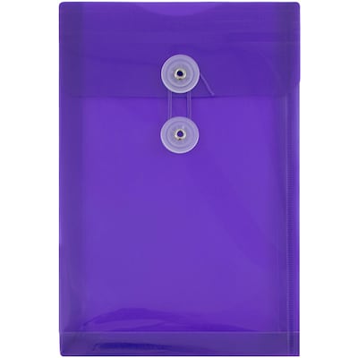 JAM Paper® Purple Medium Plastic Open End Envelopes with Button and String Closures are made of durable yet pliable plastic and each feature a secure two button string tie closure. As these envelopes are a little smaller than the standard sheet of paper (about 6 x 9 inches), they are perfect for smaller documents and checks. The bold royal color of this envelope can help you stay organized by making your documents and other stored items stand out to be found quickly and easily! This pack includes 12 envelopes. Don't let your smaller, yet valuable documents get lost in the messes of life. Keep them protected and in order with these bright envelopes!