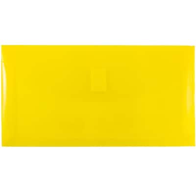 JAM Paper® Yellow Hook and Loops Closure #10 Plastic Filing Envelopes measure 5.25 x 10 inches each and expand in width up to 1 inch. This pack contains an even total of 12 envelopes. Each one is made out of smooth and durable poly plastic and features a bright and vibrant banana yellow color! These envelopes have rounded flap openings and secure, easy-to-use hook and loop fastener closures. Use these yellow plastic envelopes to store, protect and organize receipts, checks, notes, cards, and other important papers and documents. They can also be used to enclose small office and school supplies such as scissors, pens, and pencils! Use them in the classroom, your work space, or at home.