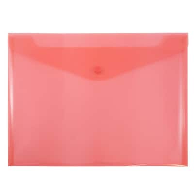 These JAM Paper® Red Letter Booklet Plastic Envelopes with Snap Closures are 9.75 x 13 inches in size and come in packs of 12. They are made of pliable, semi-transparent plastic and are perfect for storing or transported standard sized documents. Each one has a Vflap opening and a one-button snap closure to keep your documents secure. Use them at home, at your office, or any place in which you are feeling overwhelmed by disorganized papers. Protect your documents from the risk of being damaged in storage or in transport. Their grapefruit red color brings a bright and summery feel to any setting.