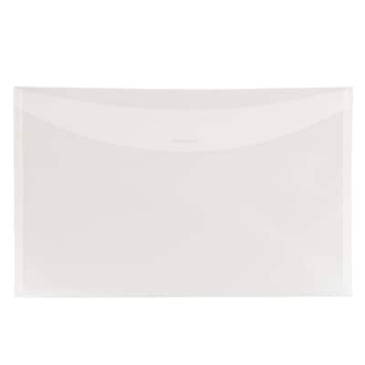 JAM Paper® Clear Booklet Plastic Envelope with Tuck Flap Closures are 6 x 9 inches in size and made of pliable, sturdy, transparent plastic. These envelopes come in packs of 12 and are perfect for folded standard sized documents, bank checks, receipts, large note cards, and other papers that you need to keep clean, crisp, and protected. Their tuck flap closures are composed of a curved tab on the straight flap opening that folds into a slit in the front of the envelope for secure closing and easy opening. Because these envelopes are clear, your documents and stored items can be viewed from the outside. Protect all of your important papers with these versatile envelopes!