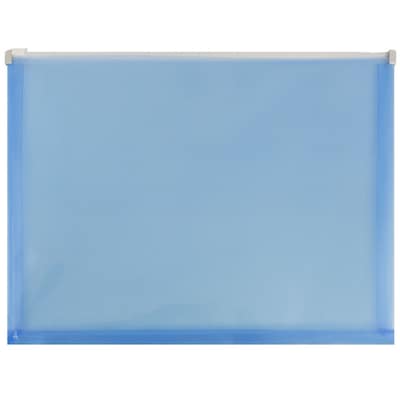 JAM Paper Letter booklet plastic zip closure poly envelopes in blue color sized 9 1/2" x 12 1/2" provides an organized storage of important papers and comes in a pack of 12.