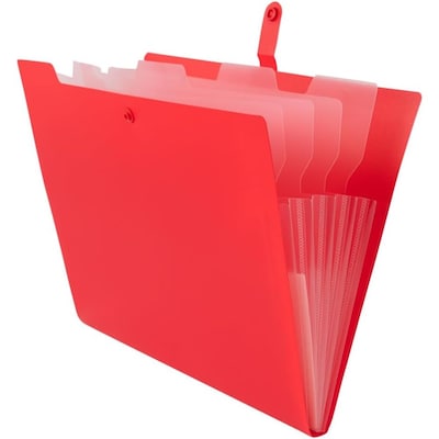 JAM PAPER Plastic File Folder with Snap Closure, 5 Pocket, 9"W x 11.5"H, Red (FF39783RE)