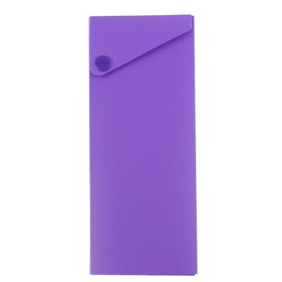 JAM Paper® Purple Sliding Pencil Case with Button Snap is made out of smooth and durable plastic and measures 7 3/4 x 2 3/4 x 1 1/8 inches in size. This individually sold pencil case is will keeps your pens and pencils safe and organized as your vary them from place to place in your briefcase or bag. The bold purple color of this pencil case will stand out and make your pens and pencils easy to find. Writing utensils are kept inside the inner compartment of the case which can easily be slid in and out of the outer cover. This case closes with an angled flap and a plastic snap button closure.