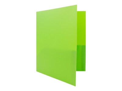 JAM Paper Heavy Duty Two-Pocket Plastic Folders, Lime Green, 108/Pack (383HLIB)