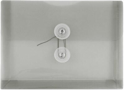 JAM Paper Smoke Grey Index Sized Plastic Booklet Envelope with Button and String Tie Closure are 5.5 x 7.5 inches, the perfect size for 5" x 7" inch index cards! Use them to store your notes for that upcoming exam, for recipes at home, for memos at work, or for any small document or note card purpose! Each one is made of pliable, yet durable plastic, has a straight flap opening, and features an easy to use two button string tie closure. These envelopes are sure to keep all of your small documents and not cards neat, orderly, and safe from damage. This pack includes 3 envelopes. Keep those small, but important notes in a secure and easy to carry place with this neutral grey envelope! Size: 5.5in x 7.7in | Color: Grey | Quantity: 3