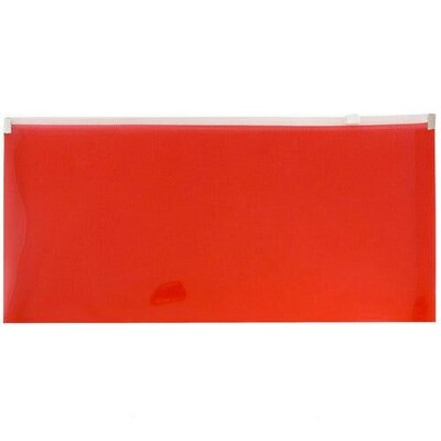 JAM Paper Red #10 Plastic Envelopes with Zip Closures are 5 x 10 inches in size and have a 1 inch expansion. Made of durable and slightly flexible plastic, these envelopes are great for storing receipts, coupons, note cards, mementos, folded documents, pens, pencils, and more! This pack contains 3 envelopes for multiple uses! The zip closures of these envelopes allow for quick and reliable opening and closing. Use them to store small papers and items in drawers or on shelves, or put them in your bag or brief case to keep items safe in transport. Their semi-transparent, vibrant red color is sure to stand out at the office and help you to be more alert throughout the day. Size: 4.75in x 9.5in | Color: Red | Quantity: 3