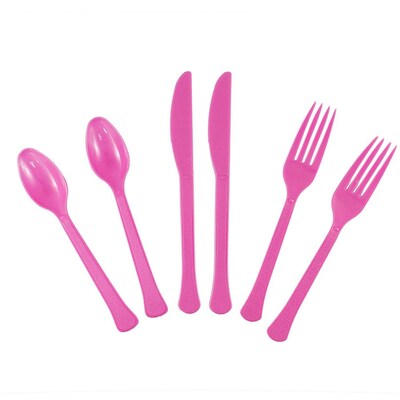 - Color: Fuchsia Pink Durable Plastic Forks, Knives & Spoons