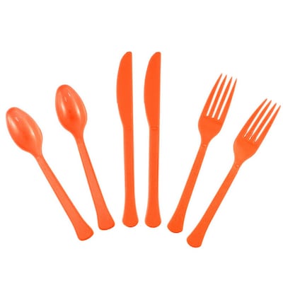 - Color: Orange Durable Plastic Forks, Knives & Spoons