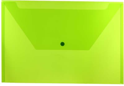 These JAM Paper Lime Green Legal Booklet Plastic Envelopes with Snap Closures are great for all of your document storage and transportation needs. At 9.75 x 14.5 inches, they are perfect for standard sized or slightly larger papers. Each one is made of protective, but pliable and semi-transparent plastic. They feature straight flap openings and one button snap closures. Their bright and vibrant green color brings a lively and electrified feel to your home or office while helping your documents to stand out! Don't let disorganization have a place in your life or leave your documents at risk for damage. Instead, stay orderly and keep them safe with these lime green envelopes. Size: 9.75 x 14.5 | Color: Lime Green | Quantity: 3