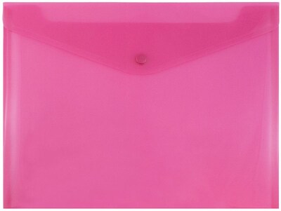 These JAM Paper Fuchsia Letter Booklet Plastic Envelopes with Snap Closures are 9.75 x 13 inches in size and come in packs of 3. They are made of pliable, semi-transparent brightly colored plastic and are perfect for storing or transporting standard sized documents. Each one has a Vflap opening and a one-button snap closure to keep your documents secure and in place. Use them at home, at your office, or any place where you are feeling overwhelmed by disorganized papers. Get your records, projects, and more in order. Their neon pinkish color is sure to bring a lively excitement to any setting. Size: 9.75in x 13in | Color: Fuchsia | Quantity: 3
