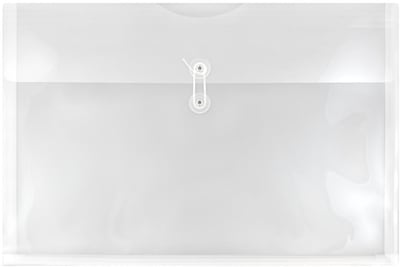 JAM Paper Clear Large Booklet Plastic Envelopes with Button and String Tie Closures are perfect for keeping all of your larger important documents safe and organized. Whether it be financial reports for the office, the records of your employees, or drawings that you are submitting for art class, this envelope can reliably and conveniently protect them all. Each one is made of a durable, flexible plastic and features a straight flap opening. As the name implies, each closes with a secure two button string tie closure. Use them at home, work, or school. With 3 x 18 inches of inner space, these envelopes even provide enough room for those larger than average documents that you may need for presentations. This pack comes with 3 envelopes. Size: 3in x 18in | Color: Clear | Quantity: 3