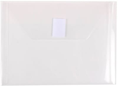 JAM Paper Clear Index Sized Plastic Envelopes with Hook & Loop Closure are 5.5 x 7.5 inches in size, making them great for note cards, tickets, receipts, and folded documents. This pack includes 3 envelopes. Each one is made out of pliable and protective plastic that guards against scratches, bending, tears, stains, and other damage. The Hook & Loop Closures of these envelopes close securely and open with ease. These clear envelopes are versatile and appropriate for any setting in which you need to manage clutter and become more organized. Don't let your small important paper items become lost or damaged. Instead, give them the protection they need with these clear envelopes. Size: 5.5in x 7.5in |Color: Clear | Quantity: 3