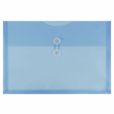 JAM Paper Blue Legal Sized Plastic Envelopes with Button and String Tie Closures are perfect for storing and protecting larger or longer documents! Each one is 10.5in x 14.5 in (about 10 x 14 inches) in size, is made of pliable yet durable plastic, has a straight flap opening and features a two button string tie closure. These envelopes feature a sky blue color and a smooth, transparent surface. This combination gives your stored documents a splash of bright color while still allowing you to view them from the outside, making it easy for you find them quickly and easily! This pack includes 3 envelopes. Use these envelopes, at work, home, or school to protect documents from scratches, bends, and dents! Size: 9.75in x 1.25in x 14.5 | Color: Blue | Quantity: 3