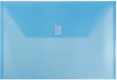 JAM Paper Blue Legal Booklet Sized Plastic Envelopes with Hook & Loop Closure are 9.75 x14.5 inches in size and come in packs of 3. Each envelope is made of pliable, sturdy, protective plastic and guards your standard sized and slightly larger documents against tearing, bending, stains, and other damage. Their Hook & Loop Closure allow that they stay closed securely and can be opened easily. The semi-translucent sky blue color is sure to bring some brightness and clam to your workplace. Don't leave your important documents at a risk for being damaged in storage or in transport. Instead, protect them with these blue envelopes! Size: 9.75in x 14.5in |Color: Blue | Quantity: 3