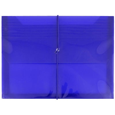 JAM Paper Blue Letter Booklet Size Plastic Expansion Envelopes with Elastic Band Closures are ideal for storing multiple standard sized sheets of paper at the office, in your desk, on you shelf, in your dorm room, in your locker, or anywhere! Each one is made from pliable yet durable, semi-transparent blue plastic and closes with an attached elastic band that expands to encircle each envelope in the middle. With 13 x 9.75 inches of space, and the capacity to expand up to over 2 inches in width, these envelopes can handle larger files. Reliably protect your documents from dirt, bends, and tears while making them stand out with this bright blue color! This pack includes 3 envelopes. Size: 13in x 9.75in. x 2.625in | Color: Blue | Quantity: 3