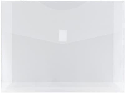 JAM Paper Clear Letter Booklet Sized Envelopes with Hook & Loop Closure are 9.75 x13 inches in size with a 2.25 inch expansion, making them the perfect size for standard sized documents and small office supplies, such as pens, scissors, and letter openers. The Hook & Loop Closure of each envelope closes tightly and opens with ease. Made of durable and pliable clear plastic, these envelopes will protect your files and papers from bending, tearing, stains, and other damage. They fit effortlessly into desk drawers or filing cabinets. Their shape and size also makes them ideal for briefcases and bags, so that you can keep your papers safe in transport! This pack includes 3 envelopes. Size: 9.75in x 13in | Color: Clear | Quantity: 3