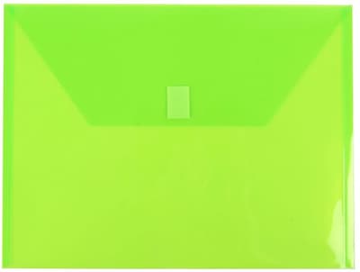 This 3 Pack of JAM Paper Lime Green Letter Booklet Sized Envelopes is great for all of your home and office document storage and protection needs. Each envelope is 9.75 x 13 inches in size and is made of flexible, and durable plastic material. Use them to store standard sized documents in desks, cabinets, or glove compartments. Guard documents against bending and tearing as you transport them from place to place. The rectangular, Hook & Loop Closure of these envelopes keep them reliably closed and can be easily opened. Don't let you documents become disorganized or blemished. Use these bright, electric green envelopes to keep them safe! Size: 9.75in x 13in | Color: Lime Green| Quantity: 3