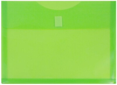 JAM Paper Lime Green Letter Booklet Plastic Expansion Envelopes with Hook & Loop Closure are 9.75 x 13 inches in size with a 1 inch expansion. In this pack of 3, each envelope has a Hook & Loop Closure for tight closing and easy opening. Their size makes them perfect for standard sized documents and small office supplies such as pens, markers, paperclips, scissors, and more. With their zesty lime color they, are sure to bring some energetic brightness to any workspace! Their durable plastic material will protect your documents from bending, tearing, stains, and other damage. Use them in the office to easily keep your documents in drawers and on shelves. Use them to transport documents; they effortlessly fit into backpacks and briefcases! Size: 9.75in x 13in | Color: Lime Green | Quantity: 3