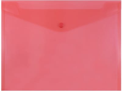 These JAM Paper Red Letter Booklet Plastic Envelopes with Snap Closures are 9.75 x 13 inches in size and come in packs of 3. They are made of pliable, semi-transparent plastic and are perfect for storing or transported standard sized documents. Each one has a Vflap opening and a one-button snap closure to keep your documents secure. Use them at home, at your office, or any place in which you are feeling overwhelmed by disorganized papers. Protect your documents from the risk of being damaged in storage or in transport. Their grapefruit red color brings a bright and summery feel to any setting. Size: 9.75in x 13in | Color: Red | Quantity: 3