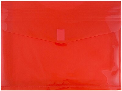JAM Paper Red Letter Booklet Plastic Envelopes with Hook & Loop Closure are 9.75in x 13in in size and have a 2 inch expansion, making them perfect for standard sized documents and small desk supplies. Made of durable and pliable poly plastic material, these envelopes will protect your documents from bending, tears, smudges, stains, and other damage. Their Hook & Loop Closures close tightly and open easily. In many cultures around the world, the color red represents beauty, vitality, and joy! Bring this envelope into your workspace to add some vitality and energy to your weekdays. Use them to conveniently store papers in desks or cabinets, or to carry them safely within your briefcase or bag. This pack includes 3 envelopes. Size: 9.75in x 13in | Color: Red | Quantity: 3