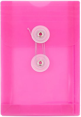 JAM Paper Premium Plastic Filing Envelope with Button & String Closure, 4 1/4" x 6 1/4", Fuchsia Pink, 3/Pack (473B1FUX3)