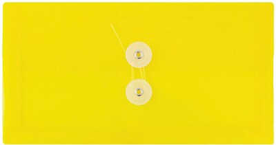 JAM Paper Premium Plastic Filing Envelope with Button & String Closure, 5 1/4" x 10", Yellow, 3/Pack (921B1YEX3)