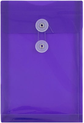 JAM Paper Open End Button & String Closure Envelopes are a great way to keep your documents protected and easy to find. Made from smooth semi-translucent plastic, these envelopes are water, scratch, and tear resistant, constructed to safely secure and protect important documents from the elements. They measure 6.25 x 9.25 inches and have a 1-inch expansion. This envelope features a button string closure to help seal and secure smaller papers. Their size also makes these envelopes very practical; they easily fit in drawers, desk organizers, shelves, or in bags and briefcases if you need them on the go. Great to use for organizing small documents, memos, photos, coupons, receipts or to help you keep a project neatly together! This plastic open end envelope comes in the color Purple.