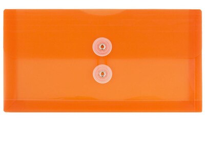 JAM Paper Orange #10 Plastic Business Envelopes with Button and String Tie Closures are great for organizing, storing, and protecting your letters, receipts, checks, bank slips, and more! Each envelope is made if sturdy plastic has a straight flap opening and a two button, string tie closure. These envelopes are 5.25in x 10in (about 5 x 10) inches in size. Use them at the office to keep track of business purchases or at home to store letters or bills. Use them at lawn or bake sales to store cash! The durable composure and vibrant color of these envelopes allows you to provide protection for you documents while helping them to stand out for easier organizing and finding! Organize all of your smaller important documents with this pack of 3. Size: 5.25in x 10in | Color: Orange | Quantity: 3