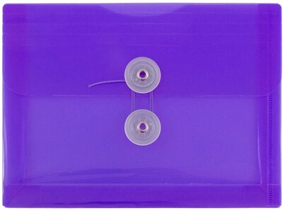 JAM Paper Purple Index Sized Plastic Booklet Envelopes with Button and String Tie Closures are 5.5 x 7.5 inches, the perfect size for 5" x 7" index cards! Use them to store and carry your notes for that upcoming exam, for recipes at home, or for any note card purpose! Each one is made of pliable, yet durable plastic, has a straight flap opening, and features a secure two button string tie closure. These envelopes are sure to keep all of your small documents and note cards neat, orderly, and safe from damage. . This pack includes 3 envelopes. Don't let your important notes or smaller documents get lost in the messes of life. Keep them organized and easy to find with these bright, bold purple envelopes! Size: 5.5in x 7.5in | Color: Purple | Quantity: 3