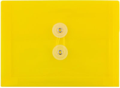 JAM Paper Yellow Index Sized Plastic Booklet Envelopes with Button and String Tie Closures are 5.5 x 7.5 inches, the perfect size for 5" x 7" index cards! Use them to store and carry your notes for that upcoming exam, for recipes at home, or for any note card purpose! Each one is made of pliable, yet durable plastic, has a straight flap opening, and features a secure two button string tie closure. These envelopes are sure to keep all of your small documents and note cards neat, orderly, and safe from damage.. This pack includes 3 envelopes. Don't let your important notes or smaller documents get lost in the messes of life. Keep them organized and easy to find with these sunflower yellow envelopes! Size: 5.5in x 7.5in | Color: Yellow | Quantity: 3