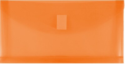 JAM Paper Premium Plastic Filing Envelope with Hook & Loop Closure, 5 1/4" x 10", Orange, 3/Pack (921V1ORX3)