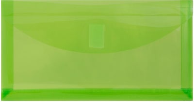 This 3 pack of JAM Paper Lime Green #10 Plastic Business Filing Envelopes with Hook & Loop Closure includes multiple envelopes for your many paper and supply storing needs of your office! At 5.25 x 10 inches with a 1 inch expansion, these envelopes are perfect for folded standard sized documents, checks, receipts, pens, staples, paper clips markers, scissors, and more! Store and transport your office papers and supplies while keep them safe from damage and making them stand out with this envelope's vibrant green color! The Hook & Loop Closure of this envelope ensures that the straight flap opening is tightly closed, yet also makes them easy to open. Use these envelopes to store items in desk drawers or to take them on the go! Size: 5.25in x 10in ( 1 inch expansion) | Color: Lime Green | Quantity: 3
