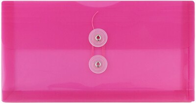 JAM Paper Fuchsia #10 Plastic Business Envelopes with Button and String Tie Closures are great for organizing, storing, and protecting your letters, receipts, checks, bank slips, and more! Each envelope is made if sturdy plastic has a straight flap opening and a two button, string tie closure. Each one is 5.25in x 10in (about 5 x 10 inches) in size. Use them at the office to keep track of business purchases or at home to store letters or bills. Use them at lawn or bake sales to store cash! The durable composure and bright pinkish color of these envelopes allows you to provide protection for you documents while helping them to stand out for easier organization and finding! Organize all of your smaller important documents with this pack of 3. Size: 5.25in x 10in | Color: Fuchsia | Quantity: 3