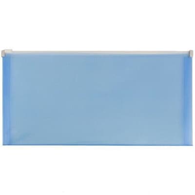 JAM Paper Blue #10 Plastic Envelopes with Zip Closures are 5 x 10 inches in size and have a 1 inch expansion. Made of sturdy and slightly pliable plastic, these envelopes are great for storing receipts, coupons, banks slips, folded documents, pens, and more! This pack contains 3 envelopes for multiple uses! The zip closures of these envelopes close and open quickly and reliably. Use them to store small papers in drawers or on shelves, or put them in your bag or briefcase to keep items safe on the go. Their semi-transparent sky blue color is both non-imposing and mildly expressive, making it fit in at any workplace with an added highlight. Size: 4.75in x 9.5in | Color: Blue | Quantity: 3