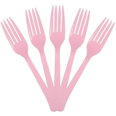 JAM PAPER Premium Utensils Party Pack, Plastic Forks, Light Pink, 48 Disposable Forks/Pack