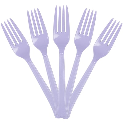 JAM PAPER Premium Utensils Party Pack, Plastic Forks, Light Purple / Lilac, 48 Disposable Forks/Pack