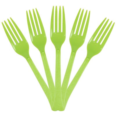 JAM PAPER Premium Utensils Party Pack, Plastic Forks, Lime Green, 48 Disposable Forks/Pack